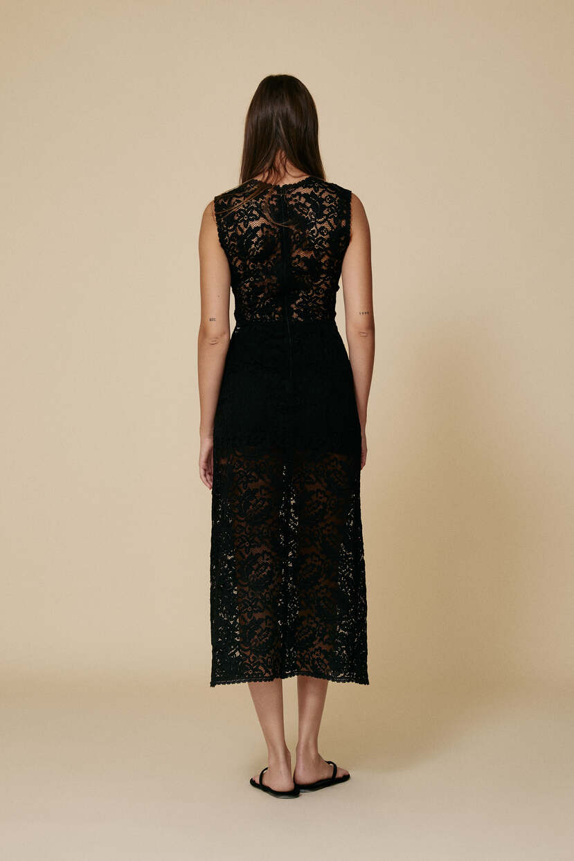 HOME - CLOTHING - Dresses - Midi-Black Lace Midi Dress With A Feminine Cut And A Delicate Waist Cut-Out - FW25