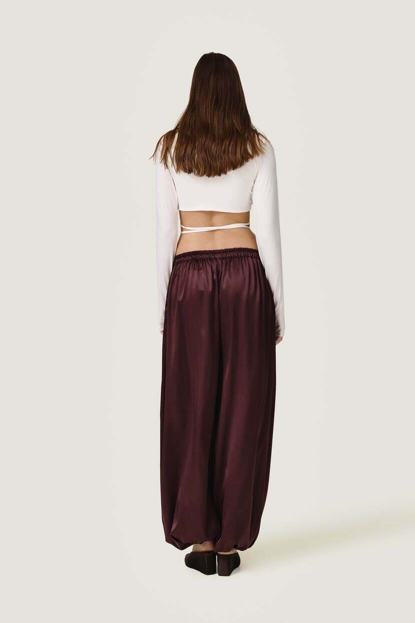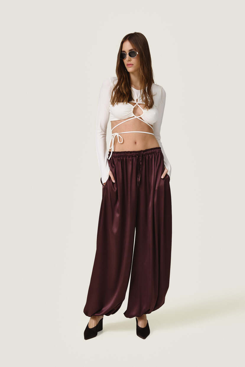 Cropped Blouse With a Front Cut-Out Detail And Adjustable Lace-Up Tie